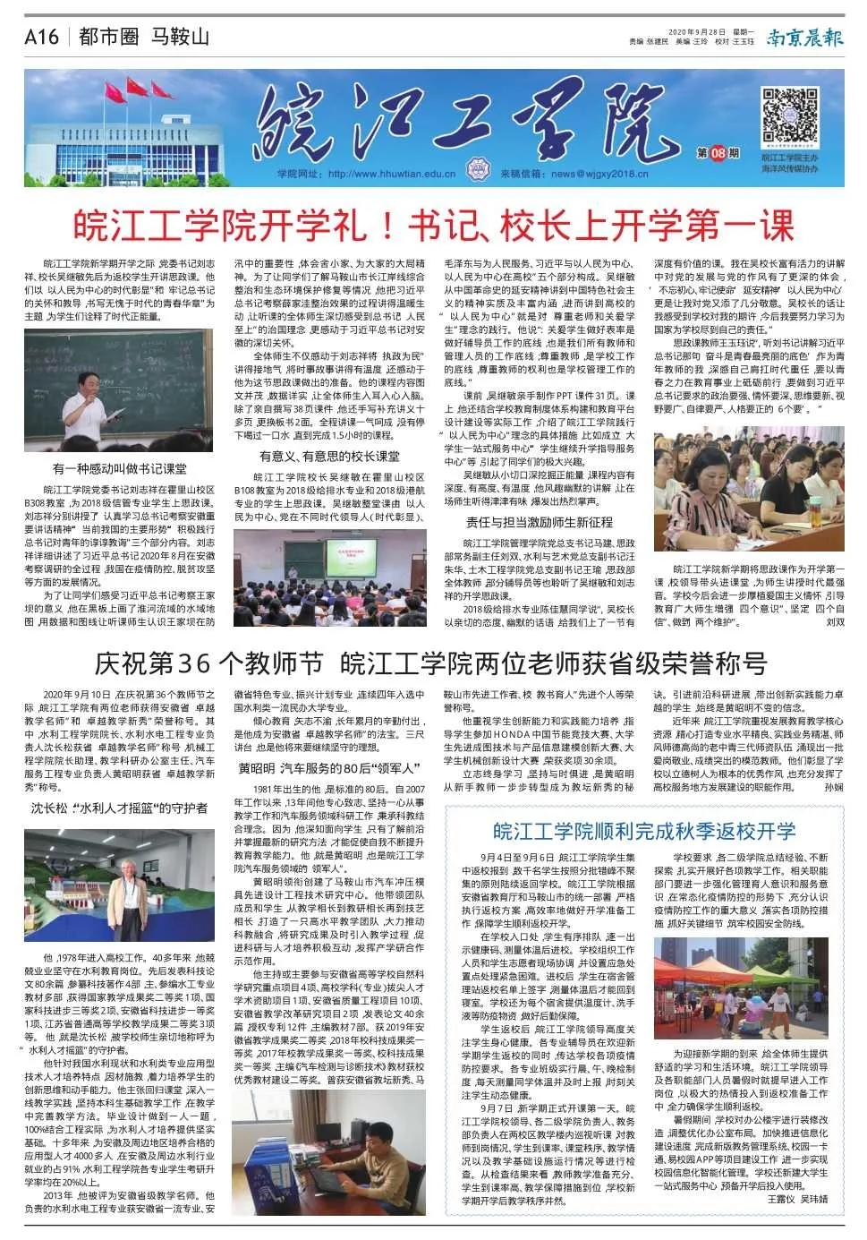 皖江工学院管理学院总支书记马建,思政部常务副主任刘双,水利与艺术党总支副书记汪朱华,土木工程学院总支副书记王瑜,思政部全体教师,部分辅导员等也聆听了吴继敏和刘志祥的开学思政课。
