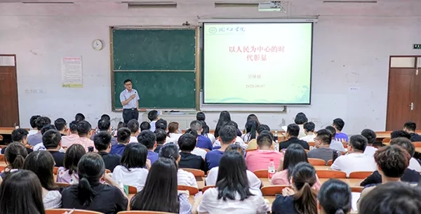 课前,吴继敏亲手制作ppt课件31页。课上,他还结合学校教育制度体系构建和教育平台设计建设等实际工作,介绍了皖江工学院践行“以人民为中心”理念的具体措施,比如成立“大学生一站式服务中心”“学生继续升学指导服务中心”等,引起了同学们的极大兴趣。