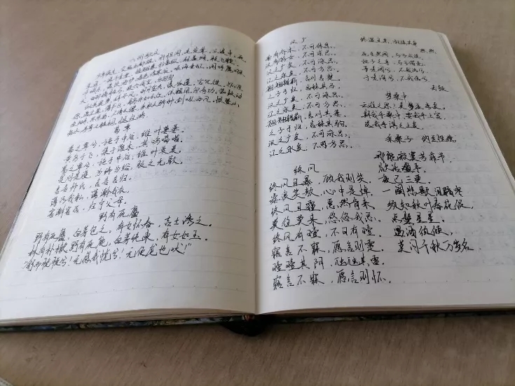 现在的她更喜爱诗词,常常在下自习回寝室之后还在开灯读诗。遇到喜欢的,还会摘抄到笔记本上去,反复研读。虽然现在大三,学业任务重,但是她表示还是会抽时间阅读,用来放松。