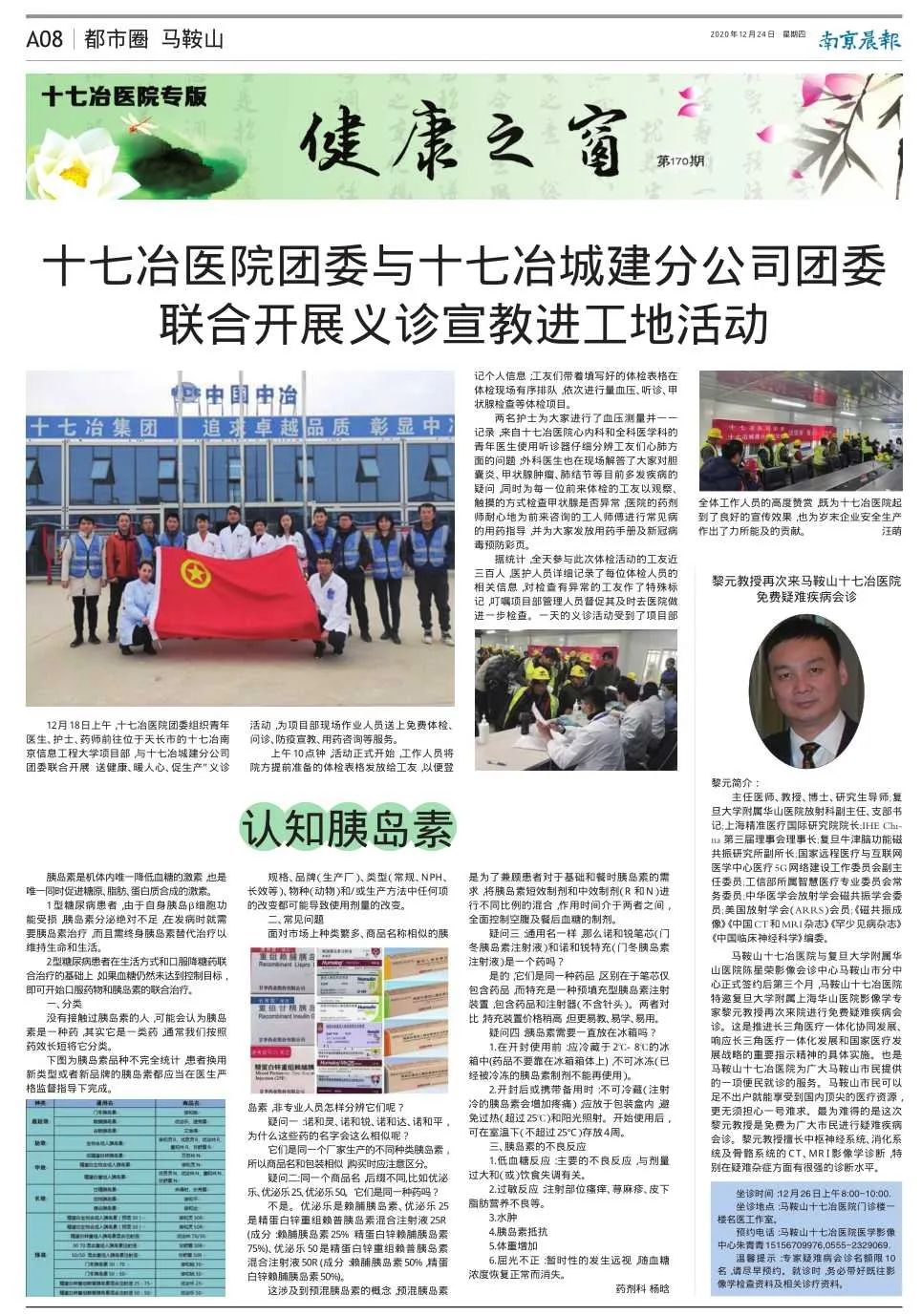 12月18日上午,十七冶医院团委组织青年医生、护士、药师前往位于天长市的十七冶南京信息工程大学项目部,与十七冶城建分公司团委联合开展“送健康、暖人心、促生产”义诊活动,为项目部现场作业人员送上免费体检、问诊、防疫宣教、用药咨询等服务。