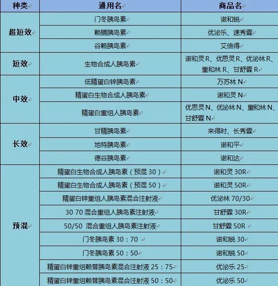 下图为胰岛素品种不完全统计,患者换用新类型或者新品牌的胰岛素都应当在医生严格监督指导下完成。