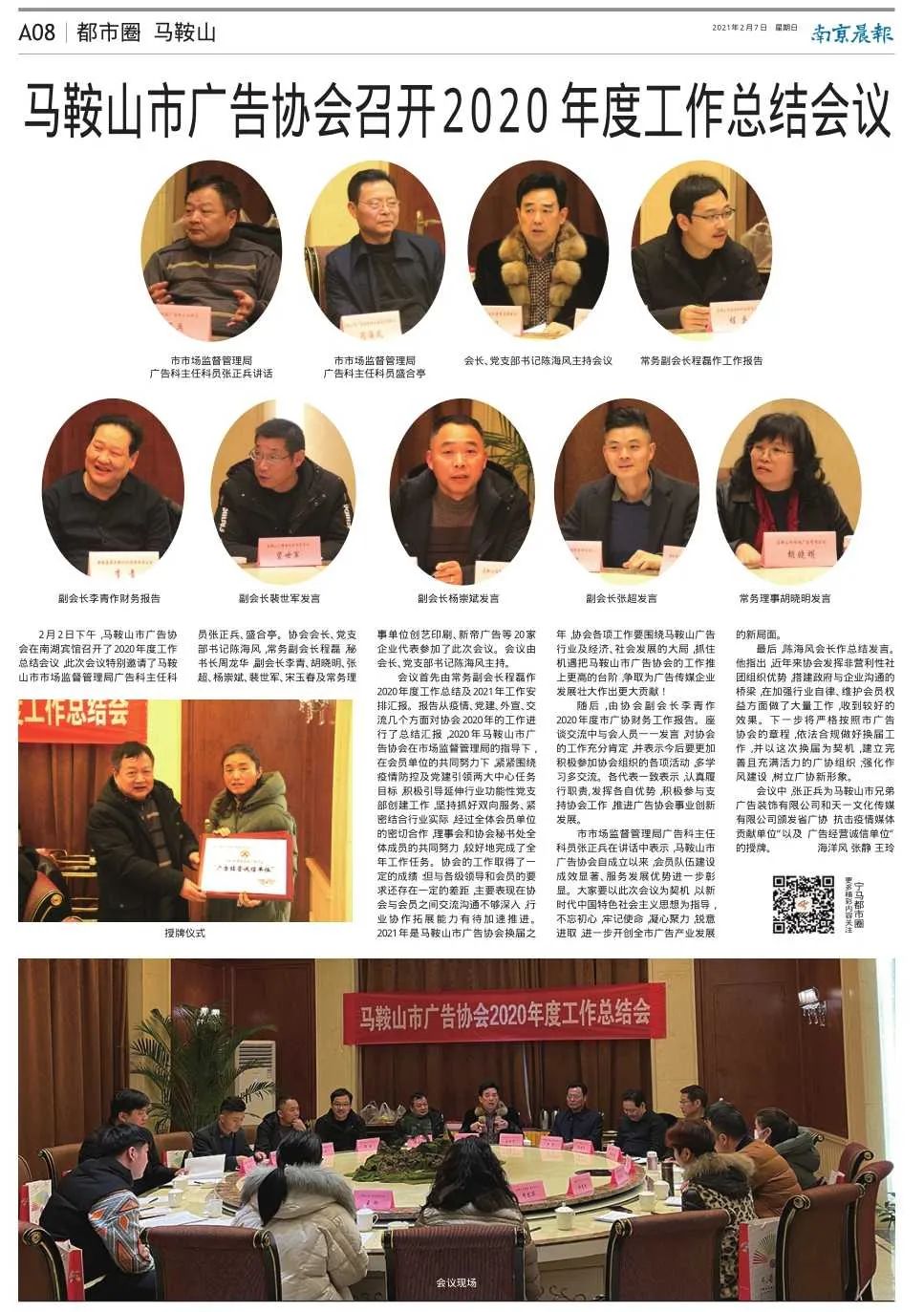 2021年是马鞍山市广告协会换届之年,协会各项工作要围绕马鞍山广告行业及经济、社会发展的大局,抓住机遇把马鞍山市广告协会的工作推上更高的台阶,争取为广告传媒企业发展壮大做出更大贡献!