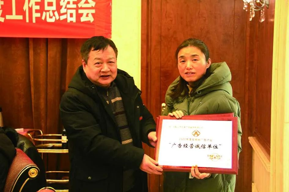 张正兵为马鞍山市兄弟广告装饰有限公司和天一文化传媒有限公司颁发省广协“抗击疫情媒体贡献单位”以及“广告经营诚信单位”的授牌。