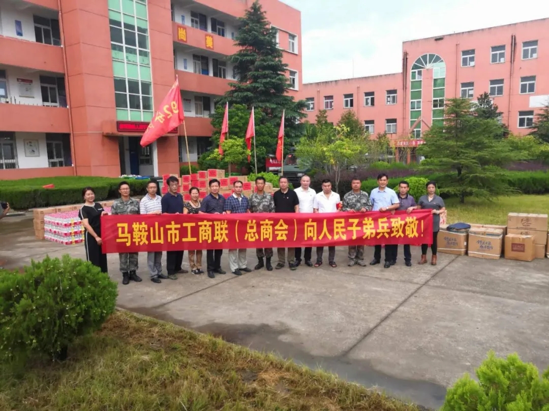 7月27日下午,马鞍山市委统战部副部长、市工商联党组书记夏为顺,市工商联主席贺应旭,市工商联党组成员、秘书长朱俊俊,和马鞍山市庐江商会会长王文生、书记黄智德、顾问卢琴、常务副会长王萍、副会长兼秘书长张遵道、上海市马鞍山商会一行,在含山县工商联副主席龚宗应陪同下,专程前往含山县陶厂初级中学71集团军某旅住处,慰问前来支援含山抗洪防汛的子弟兵,受到热情接待。