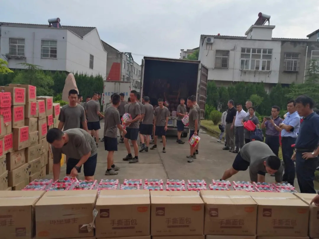 马鞍山庐江商会会长王文生说,子弟兵们,你们辛苦了,防洪抢险子弟兵冲在第一线,我们企业家也要担当社会责任,和你们一起战斗。通过捐赠生活物品,为一线防汛抗洪子弟兵提供帮助就是担当方式之一。