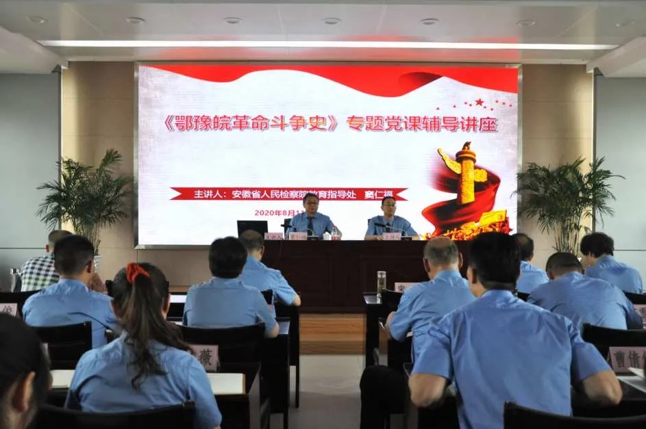 8月11日下午,雨山区人民检察院特邀安徽省人民检察院教育指导处正处级检察员窦仁福来院做《鄂豫皖革命斗争史》专题党课辅导讲座,该院党组书记、检察长宋斌主持讲座,全体检察人员聆听讲座。